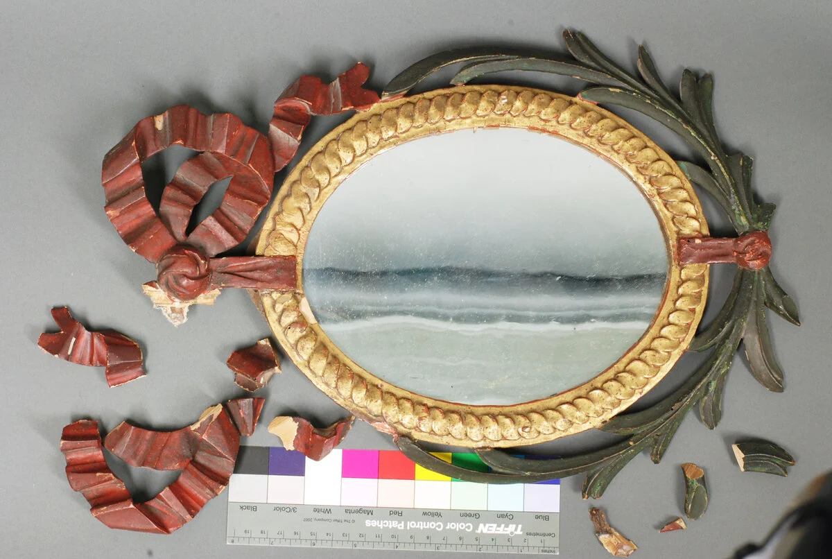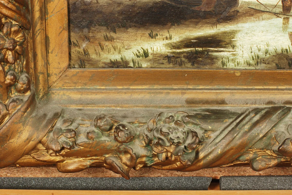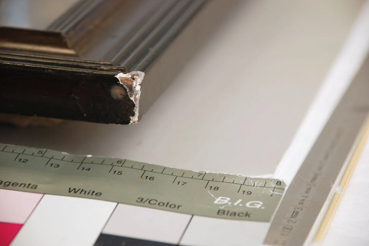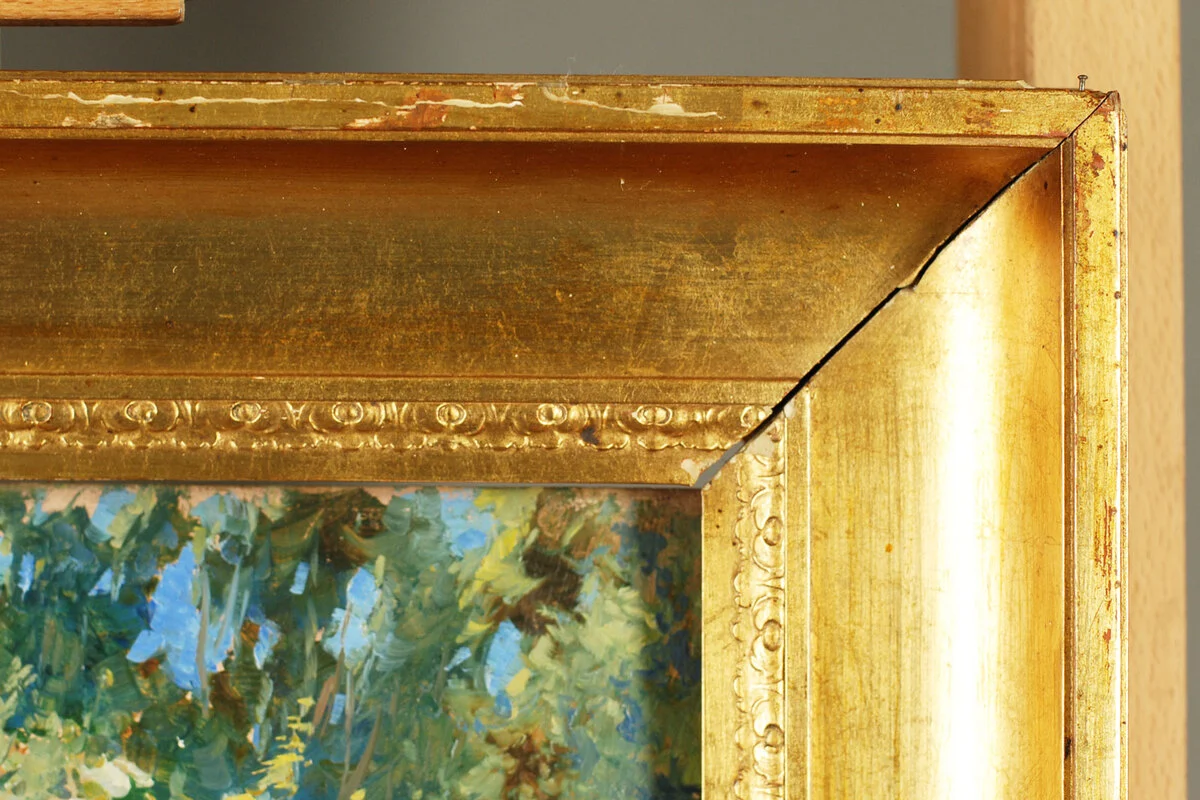Bei der Restaurierung von Zierrahmen führen wir häufig ästhetische und stabilisierende Maßnahmen durch. Zum Einen soll hierdurch das ästhetische Erscheinungsbild verbessert werden, zum Anderen sollen sie gewährleisten, dass die Funktion eines Zierrahmens als zierende und schützende Umrahmung, die eine konservatorisch sachgerechte Präsentation und Hängung des Werkes ermöglicht, wiederhergestellt wird. die künftig sichere , wie die Neuverleimung geöffneter und instabiler Gehrungen, durch. Schmutzabnahmen, Ergänzen von fehlenden Stuckelementen durch Kittung und Retusche, Festigung von Fassungslockerungen und Eintönen von Bereibungen gehören ebenfalls zu regelmäßigen Restaurierungsarbeiten.