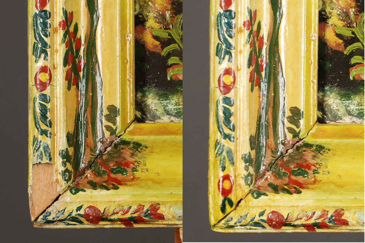 Häufig durchgeführte konservatorische, restauratorische & präventive Maßnahmen an Zierrahmen